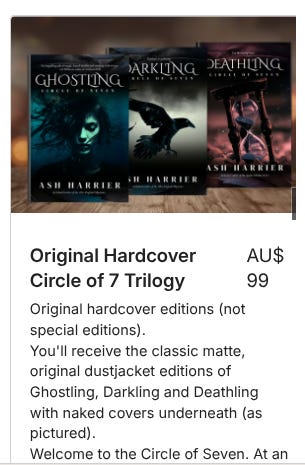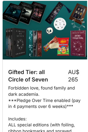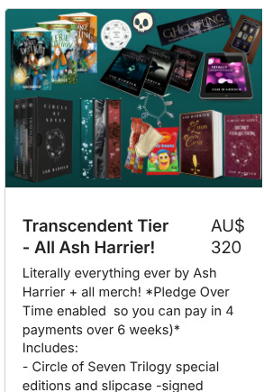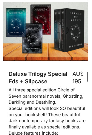 In case you missed it, my alternative pen name, Ash Harrier, is running a Kickstarter campaign where people can order special edition copies of the Circle of Seven trilogy, all about students of a secretive academy with magical powers, up against powerful old societies, while falling in love all over the place. Oh, the yearning!
